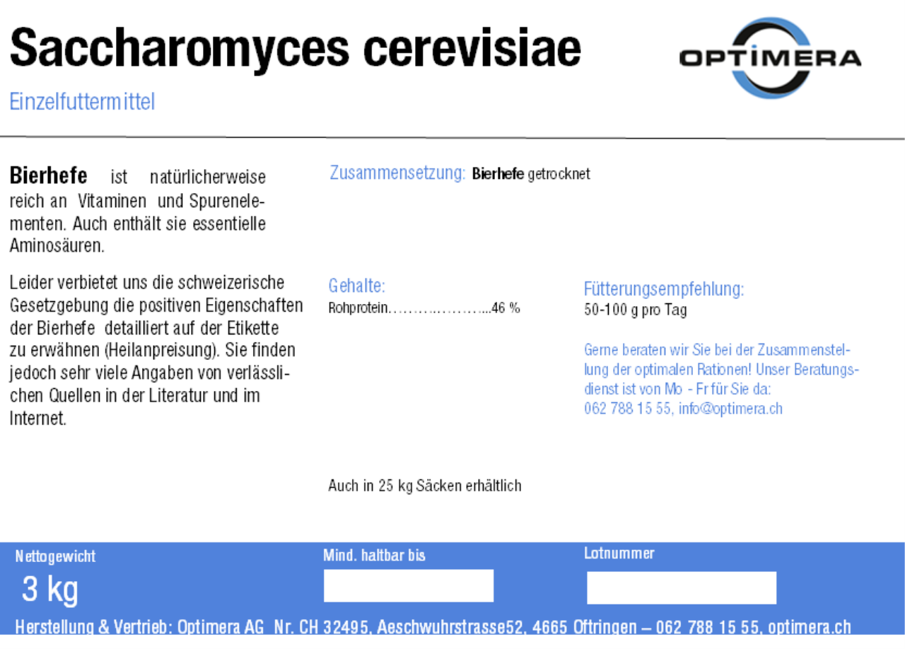 Bierhefe kann ergänzend zu einem Konzentrat wie  Atlanta  eingesetzt werden,  ist jedoch nicht in der Lage den ganzen Vitamin- und Mineralstoffbedarf eines Pferdes zu decken!