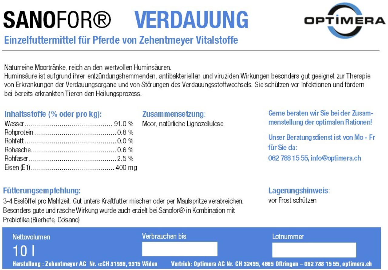 Naturreine Moortränke, reich an den wertvollen Huminsäuren. Huminsäure ist aufgrund ihrer entzündungshemmenden, antibakteriellen und viruziden Wirkungen besonders gut geeignet zur Therapie von Erkrankungen der Verdauungsorgane und von Störungen des Verdauungsstoffwechsels. Sie schützen vor Infektionen und fördern bei bereits erkrankten Tieren den Heilungsprozess.