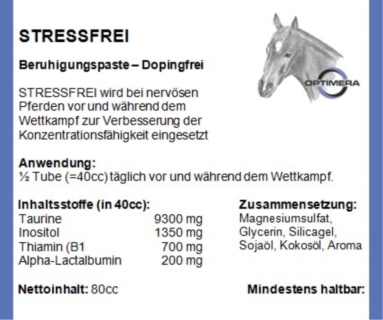 Dann dürfte ein beruhigender Zusatz sinnvoll sein, denn die Inhaltsstoffe von Stressfrei können das Nervensystem unterstützen. Genetisch bedingt haben nicht alle Pferde das gleiche Temperament. Einige lassen sich rascher stressen und quittieren es mit ihrem Fluchtinstinkt.