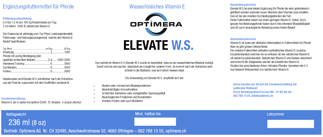 - La vitamine E naturelle dans Elevate ® W.S. est disponible immédiatement, passe rapidement et efficacement la barrière hémato-encéphalique, ce qui la rend tellement efficace lors du traitement de chevaux présentant des troubles neurologiques.